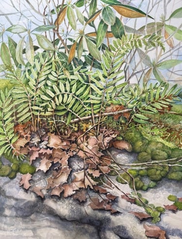 She is a signature member of the Pittsburgh Watercolor Society and has served on its board since 2018. She is also a member of the American Botanical Society and her focus has been to make the viewer aware of the precious ecosystems we live with and need to protect.
